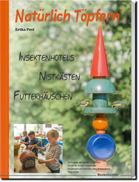 Das Buch hab ich mit viel Liebe noch einmal komplett überarbeitet. Viel zu verbessern gab es nicht, ich hab hier und da eine Anleitung etwas erweitert und ein paar neue Bilder konnte ich auch noch einfügen. Zum Beispiel hab ich für meine kleine flinke Pelzbiene in einer Ecke auf Seite 25 einen Platz gefunden, und so fliegt sie nun mit dem neuen Buch zu töpferbegeisterten Menschen. :-)