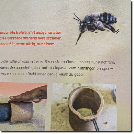 Das Buch hab ich mit viel Liebe noch einmal komplett überarbeitet. Viel zu verbessern gab es nicht, ich hab hier und da eine Anleitung etwas erweitert und ein paar neue Bilder konnte ich auch noch einfügen. Zum Beispiel hab ich für meine kleine flinke Pelzbiene in einer Ecke auf Seite 25 einen Platz gefunden, und so fliegt sie nun mit dem neuen Buch zu töpferbegeisterten Menschen. :-)